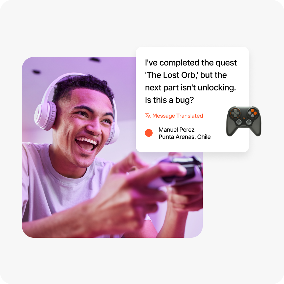 Keep players in the game. When players need help, language shouldn’t slow them down. Provide instant, 24/7 support that keeps your community engaged and playing.