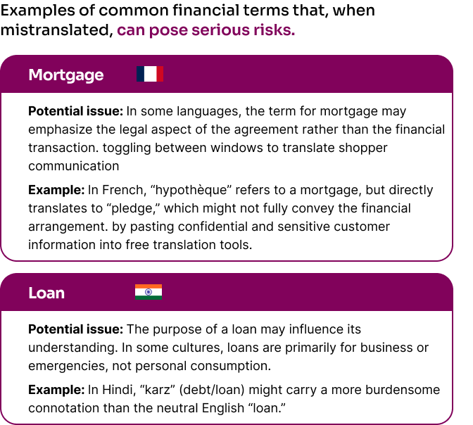 Financial terminology is complex, industry-specific and varies across cultures. Even small translation errors can have serious consequences, including legal implications or regulatory noncompliance.