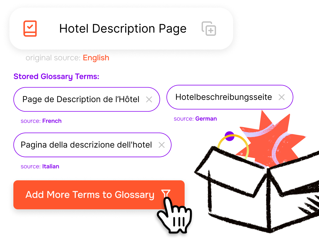 With our robust Glossary Management, you maintain brand integrity across all languages. By standardizing terminology, you ensure clear and consistent communication, reducing misunderstandings and support tickets related to miscommunication.
