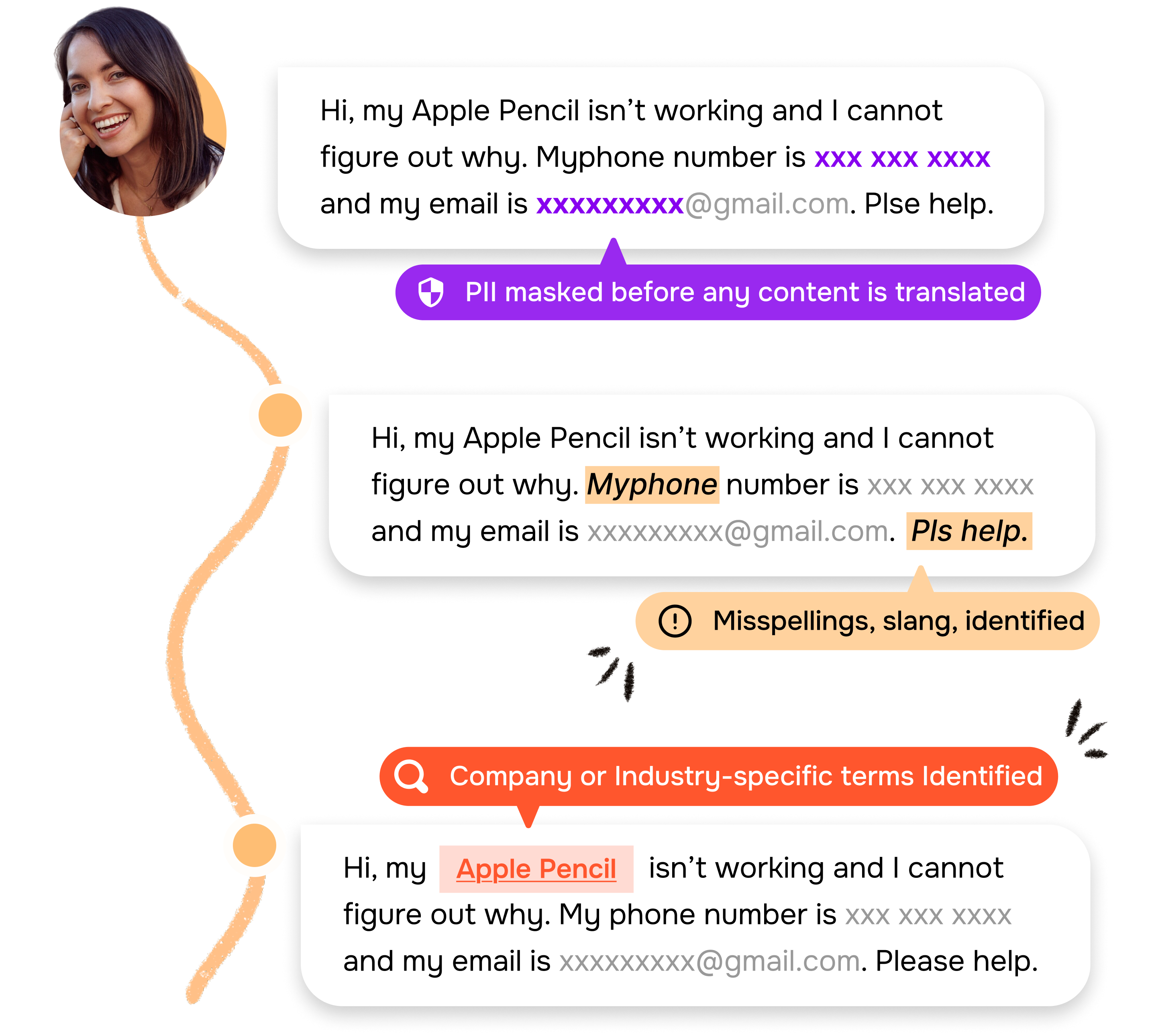 Skip the manual prep work—our AI-driven tools automatically assess and optimize your customer conversations for fluent, accurate translations in any format. Support reps can engage with customers in their preferred language without interruption, ensuring fast, seamless communication that feels natural on both ends.