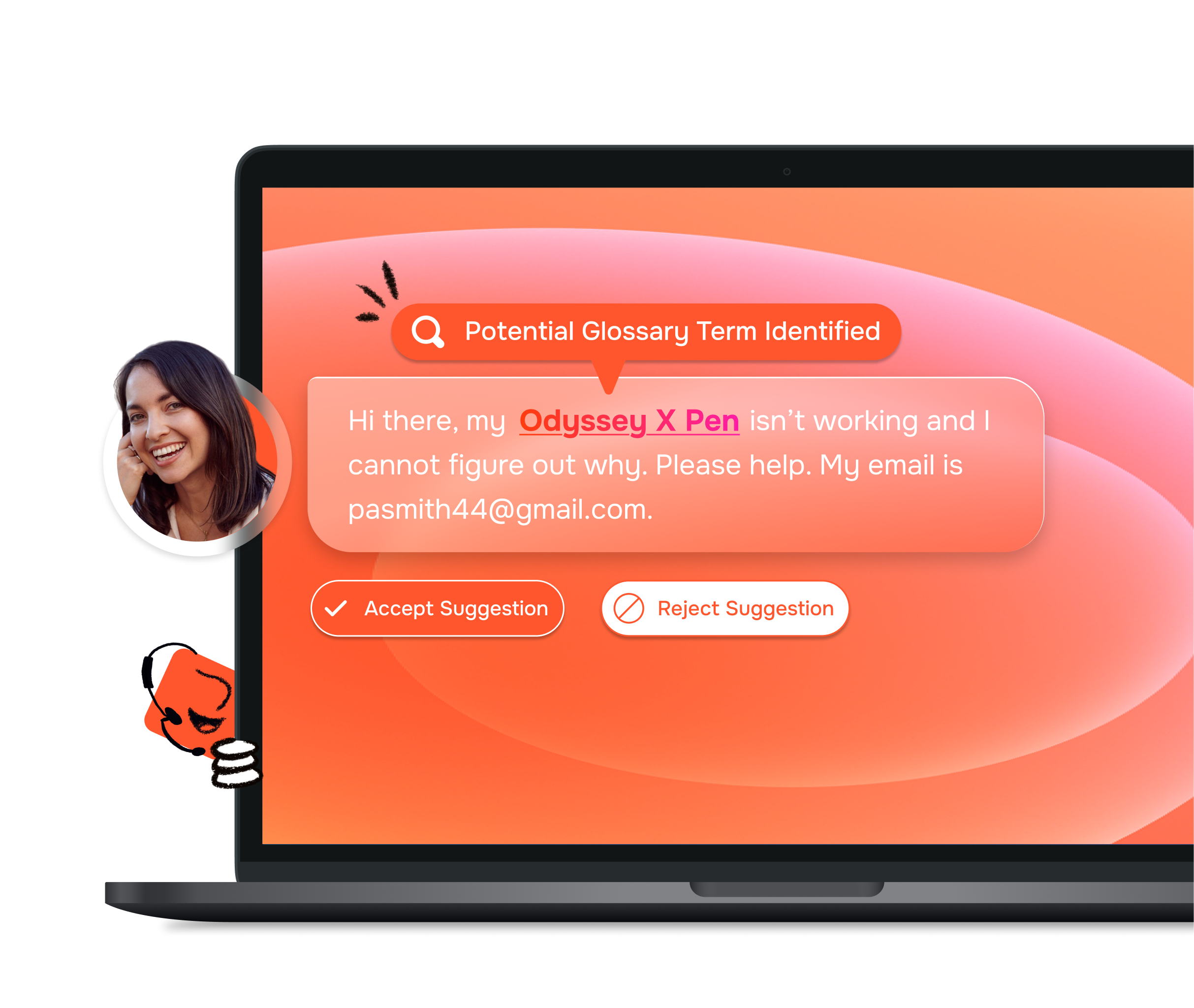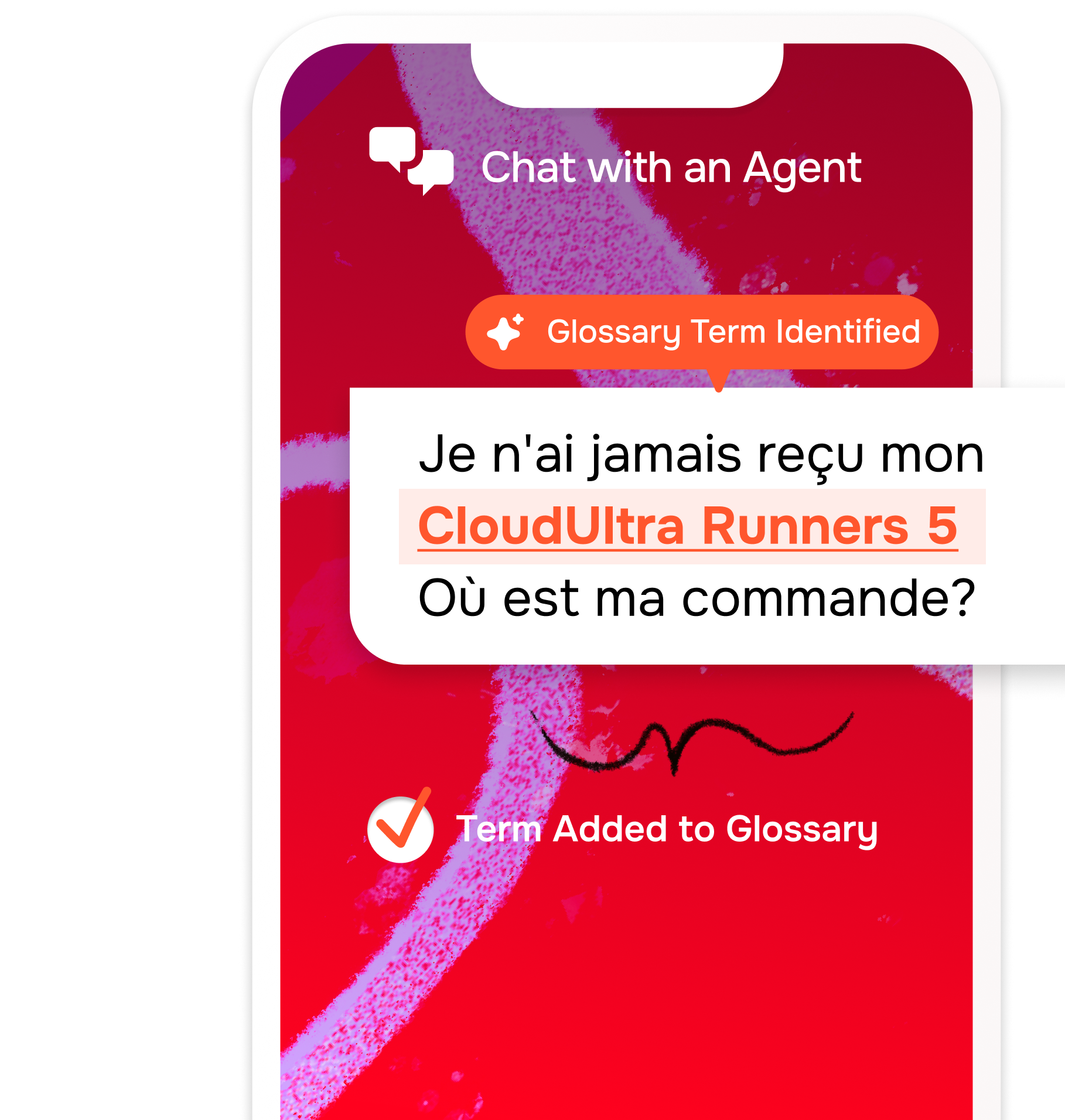 Our Self Improving Glossary continuously improves, keeping product names, industry terms, and customer slang intact.