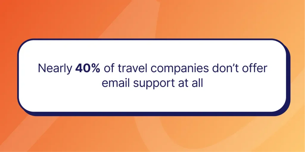 - Nearly 40% of travel companies don’t offer email support at all (Netomi)