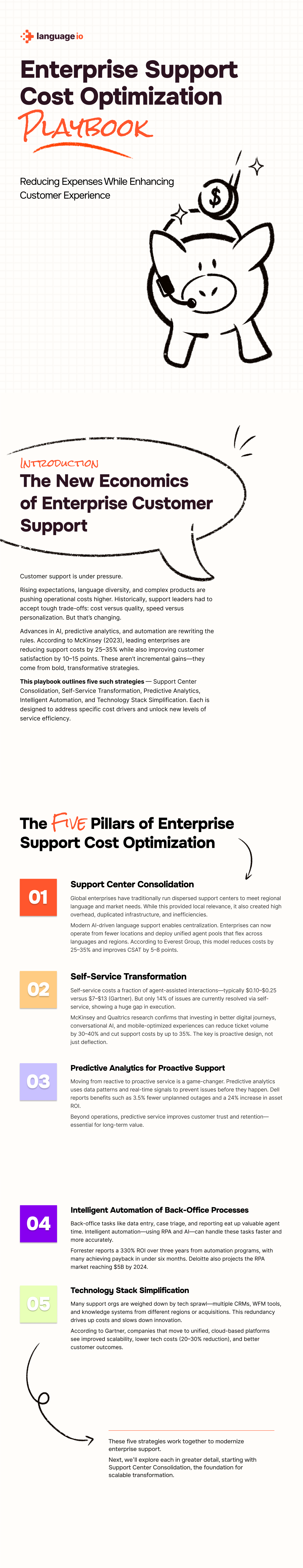 Consolidated support operations powered by AI-driven language tools are reducing management overhead and tech costs by up to 30%.