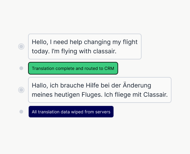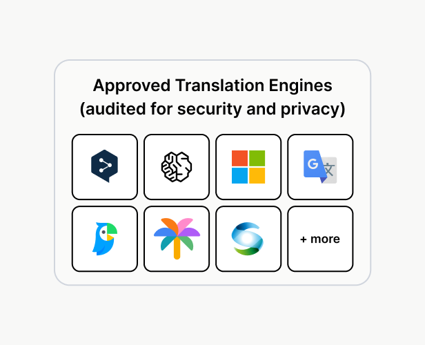 No content remains in our systems or sub-processors after translation. Data is automatically scrubbed and not retained in any way.