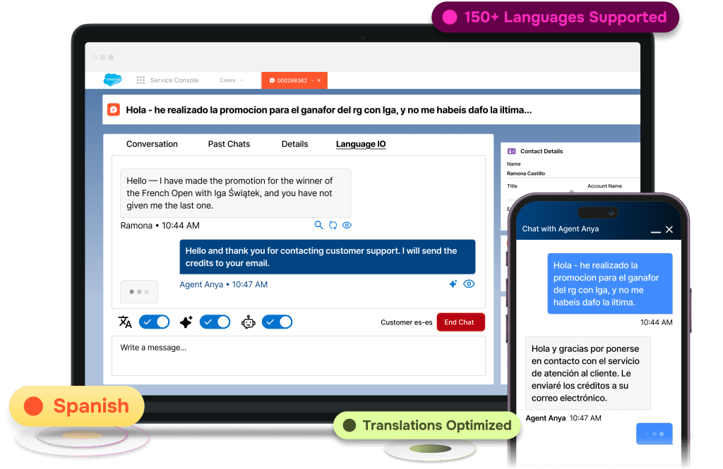 Customer expectations of brand support are at an all-time high, and speaking the preferred language of your customers is now a must. Language I/O’s Salesforce translation apps enable your brand to communicate with global customers in any language without the need to hire and train additional agents.
