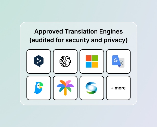 We are committed to protecting customer data, and our GDPR-compliant and ISO 27001-certified software reflects that. We encrypt customer data prior to sending content for translation, and we never store personally identifiable information (PII) in our log files or database.